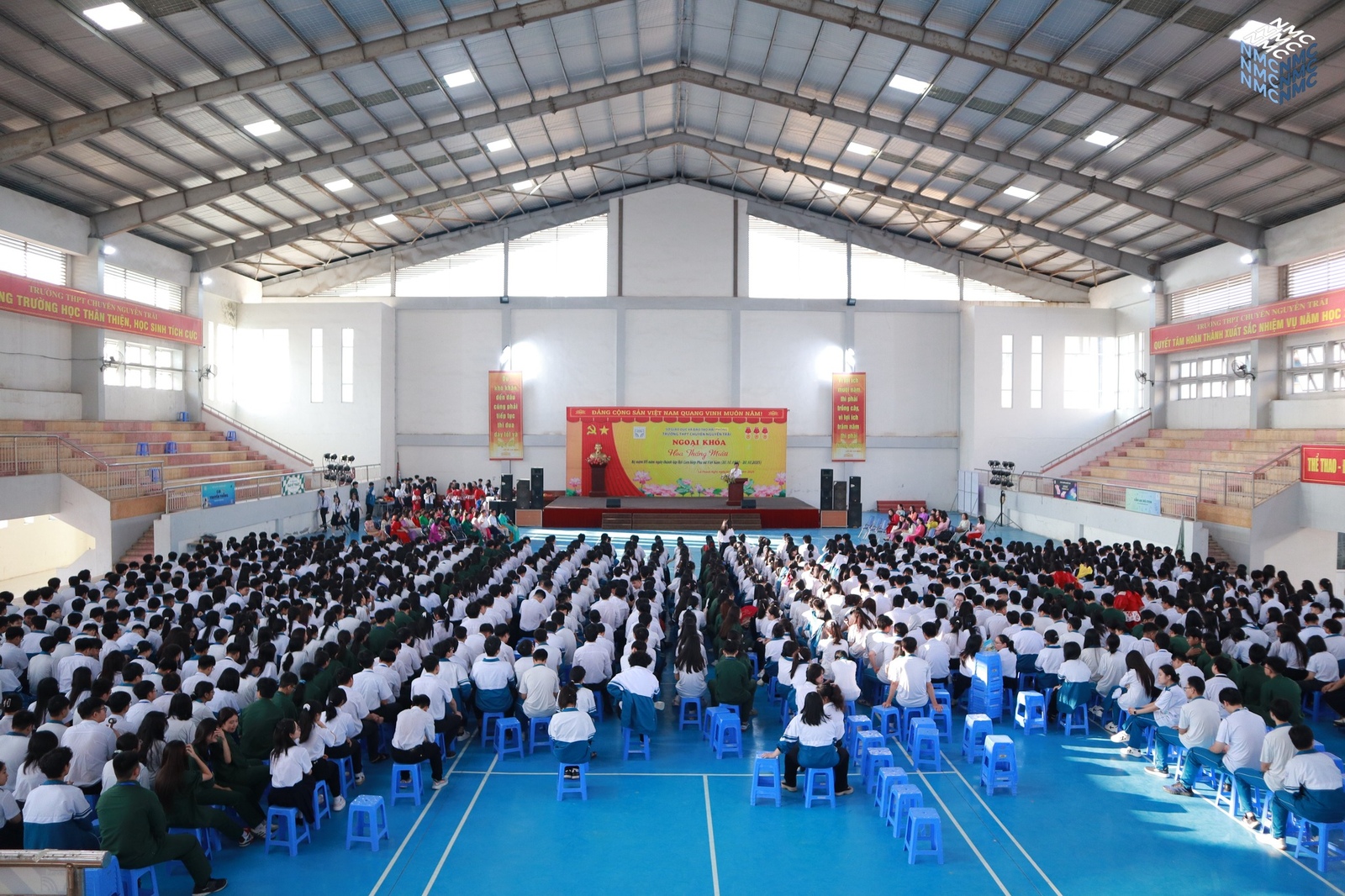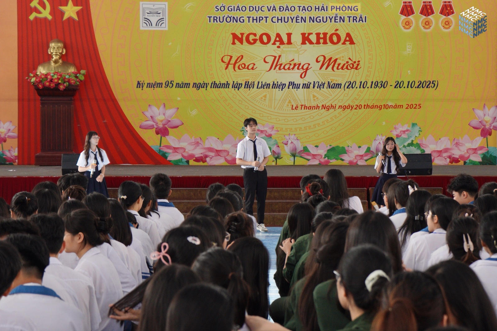 Hòa trong không khí hân hoan kỷ niệm 95 năm Ngày thành lập Hội Liên hiệp Phụ nữ Việt Nam (20/10/1930 – 20/10/2025), sáng thứ Hai, ngày 20/10/2025, Trường THPT Chuyên Nguyễn Trãi đã tổ chức chương trình ngoại khóa với chủ đề “Hoa tháng Mười” tại nhà đa năng. Sự kiện do hai chi đoàn 11 Hóa và 11 Địa phối hợp thực hiện với sự có mặt của Ban Giám hiệu, cán bộ, giáo viên, nhân viên và toàn thể học sinh nhà trường.